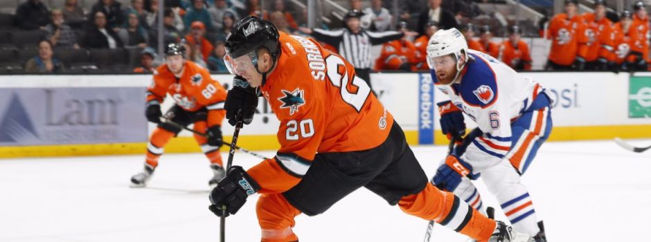 sjbarracuda.com: The San Jose Barracuda Marcus Sorenson (20) scored the third goal of the game in the second period at 18:05 beating Bakersfield Condors goalie Laurent Brossoit at SAP Center on Saturday night