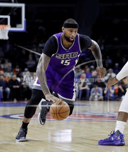 Sacramento Kings forward DeMarcus Cousins drives during the first half of an NBA basketball game against the Detroit Pistons, Monday, Jan. 23, 2017, in Auburn Hills, Mich. (AP Photo/Carlos Osorio)