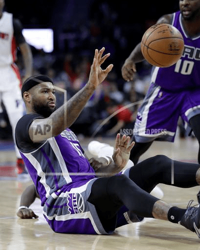 Sacramento Kings forward DeMarcus Cousins passes the ball during the second half of an NBA basketball game against the Detroit Pistons, Monday, Jan. 23, 2017, in Auburn Hills, Mich. (AP Photo/Carlos Osorio)