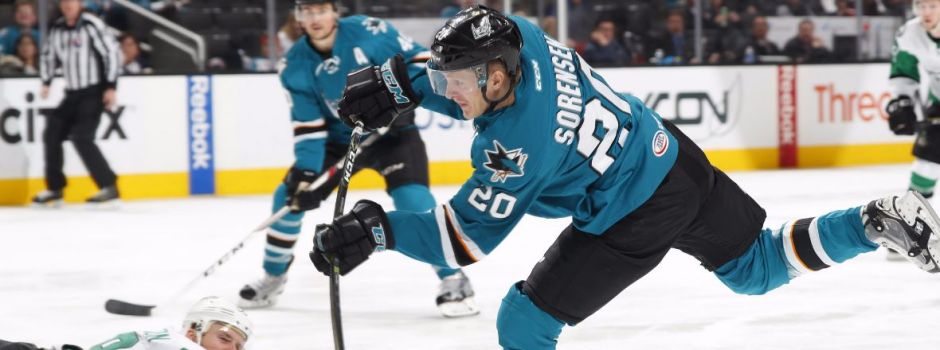sjbarracuda.com photo: San Jose Barracuda forward Marcus Sorenson who had an assist in Monday night’s game at SAP Center takes a shot of his own on net against the visiting Texas Stars