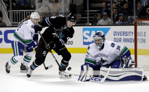 SAN JOSE, Calif. — Thursday Night against the Vancouver Canucks one San Jose Shark player hit a major career milestone. No, Joe Thornton didn’t collect assist number 1,000 in the Sharks 3-1, but rookie Marcus Sorensen netted the game-winner for his first goal of his National Hockey league career. Logan Couture added a goal and an assist and Mikkel Boedker potted a power play goal to give the Sharks their third straight win. The Canucks received a goal from all-star Bo Horvat.