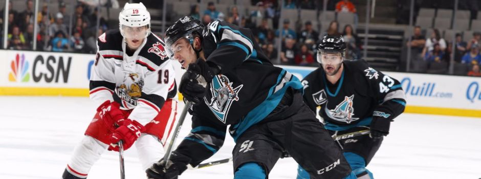 The Barracuda (35-12-2-4) bounced back to beat the Griffins (38-17-1-3) by a score of 2-1 in a shootout after a scoreless overtime period. In the first round, neither John McCarthy or Evgeny Svechnikov scored. In the second round, Kevin Labanc scored for the Barracuda. In the third round, Matt Lorito tied the score, but Daniel O’Regan scored the game-winning goal.