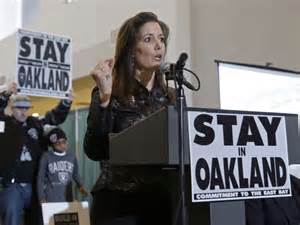 USA Today photo: Oakland Mayor Libby Schaaf who addressed the media and Oakland Raider Nation said that her heart aches for Raider Nation today