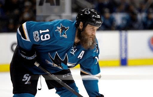 San Jose Sharks center Joe Thornton (19) during the third period of an NHL hockey game against the New York Rangers Tuesday, March 28, 2017, in San Jose, Calif. (AP Photo/Marcio Jose Sanchez)