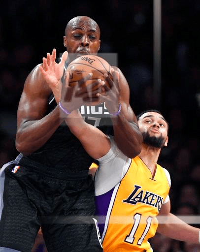 D’Angelo Russell made a driving finger roll lay-up with 41 seconds remaining to give the Lakers up 93-92. Buddy Hield made a bad pass and Corey Brewer stole the ball, the Kings’ 23rd turnover. Langston Galloway fouled Brewer, who made both at the free throw line.