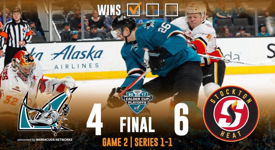 SAN JOSE — The San Jose Barracuda dropped a 6-4 decision to the Stockton Heat in Game 2 of the best-of-five opening series at SAP Center on Sunday afternoon.
