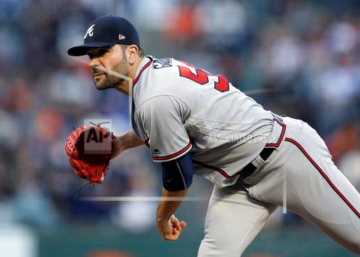 Atlanta Braves pitcher Jaime García works against the San Francisco Giants in the first inning of a baseball game Friday, May 26, 2017, in San Francisco. (AP Photo/Ben Margot)