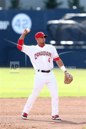 AP File Photo: Oakland A’s prospect Franklin Barreto #4 of the Vancouver Canadians during a game against the Hillsboro Hops at Nat Bailey Stadium on July 24, 2014 in Vancouver, British Columbia. Hillsboro defeated Vancouver, 7-3. (Larry Goren/Four Seam Images via AP Images)