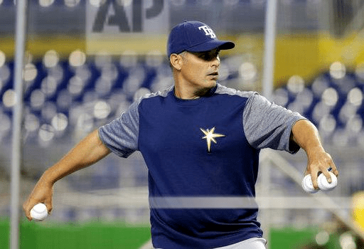 AP file Photo: Tampa Bay Rays manager Kevin Cash throws during batting practice before an interleague baseball game against the Miami Marlins, Tuesday, May 2, 2017, in Miami. (AP Photo/Lynne Sladky)