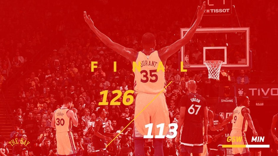 Nick Young hit a big three-pointer that gave the Dubs a spark. Durant took a rebound and raced down the court to make a big bucket to give the Warriors the lead 117-104. Minnesota then went on a 7-0 run, and the fans were starting to squirm. However, the Thompson and SCurry made back-to-back three-pointers to ensure the win as the Warriors led 124-111 with just 1:36 left in the game.