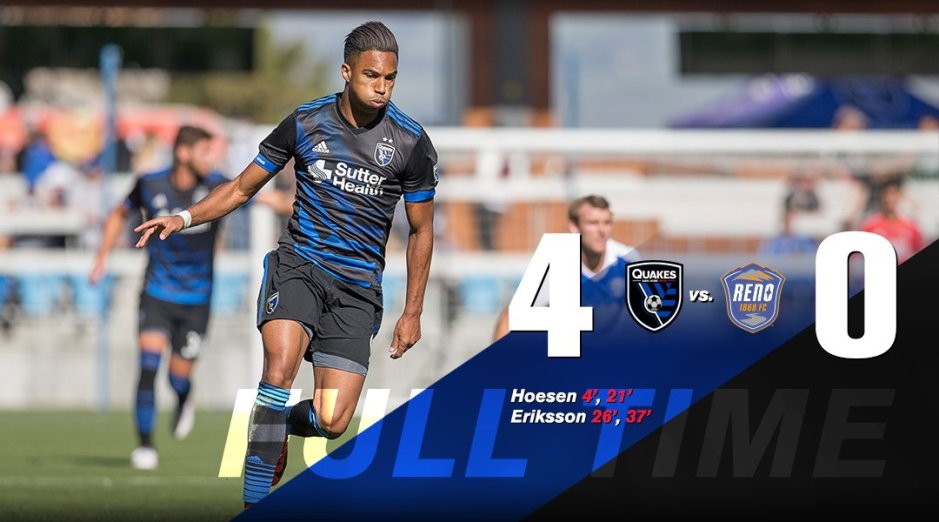 The Earthquakes were literally off and running from Avaya Stadium. Quakes forward Danny Hoesen slotted home a kick that went over the head of Reno goalkeeper Russ Klabough for a 1-0 lead at the fifth minute of the first half.
