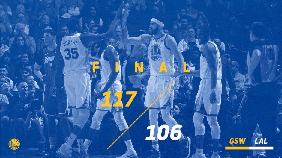 Pachulia, Looney, Iguodala, and Livingston paced the attack, and the Warriors finished the third period leading 89-82. The Warriors refused to let the Lakers get back in the game. The Lakers cut the deficit to five early in the fourth quarter, but Young, Casspi, Looney, and Durant were unstoppable, and the Warriors were able to win by a final score of 117-106.