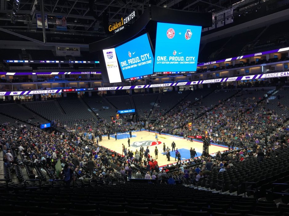 @SeanCunningham photo: Sacramento Kings attendee Sean Cunningham took this photo of the fans who were able to get into the building before Golden One Center was locked down due to safety concerns on Thursday night. Cunningham tweeted that the upper deck of the arena was empty