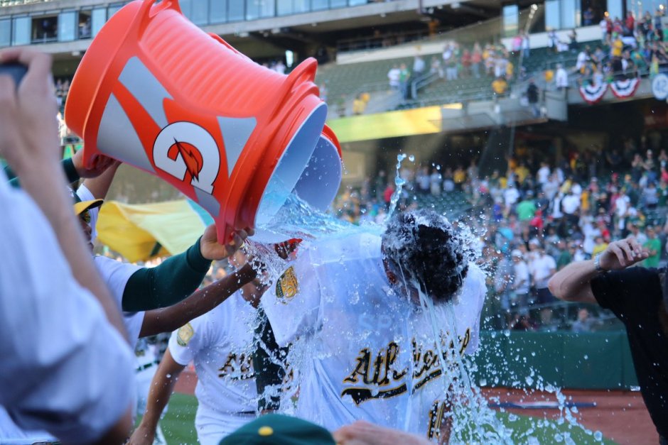 The game remained scoreless until the bottom of the 11th. With one out, Boog Powell tripled over the head of Justin Upton who was not playing deep. The Angels issued an intentional walk to Matt Joyce to set up an inning-ending double play. Angel manager Mike Scioscia brought Upton as a fifth infielder. The strategy failed as Marcus Semien singled to center to end the game and send the 27,764 fans home very happy. Final score: The A’s won 6-5.