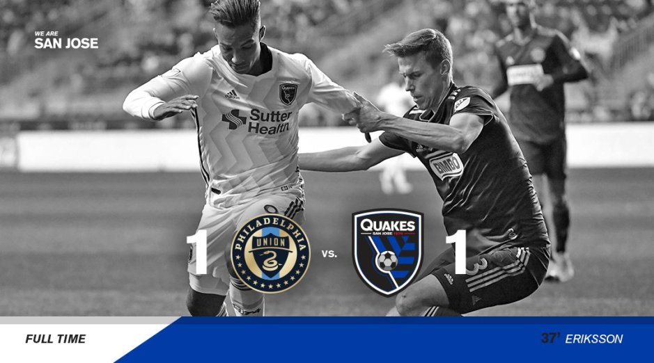 After 90 minutes, the game ended with a score of 1-1. The Union heavily exceeded the Quakes in both shots (22 versus nine) and possession of the ball (63% versus 37%). Nonetheless, San Jose did not go home pointless.