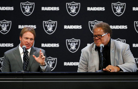 Photo credit pro32.ap.org: Oakland Raiders general manager Reggie McKenzie right and Raiders head coach Jon Gruden left will be making decisions on today’s draft