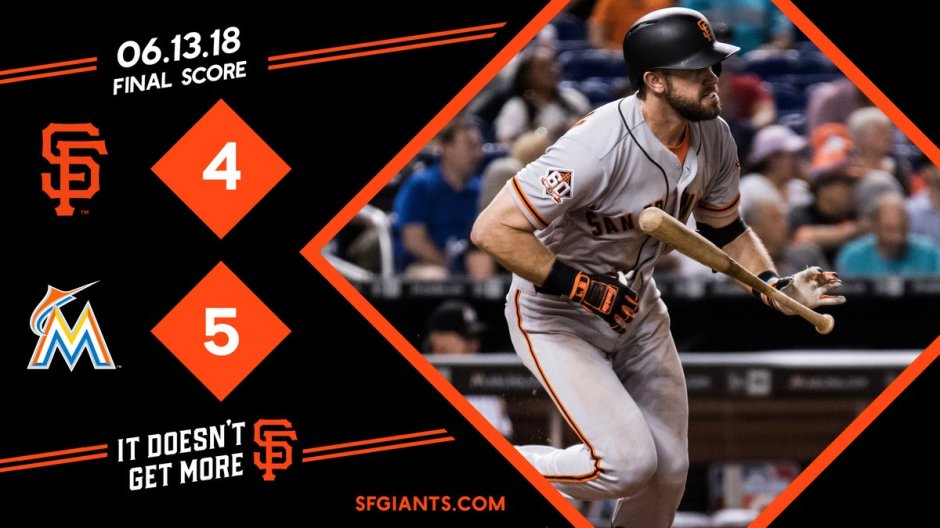 The Giants led for most of the game, but Miami kept hanging around and kept themselves in the game before eventually overtaking the visiting team in the bottom of the ninth, as Brian Anderson’s sac fly brought in the winning run.