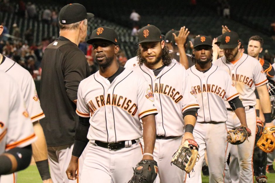 San Francisco broke the game open with a five-run rally, batting around in the eighth. Posey led off with a double, followed by a one-out intentional walk to Brandon Crawford and back-to-back singles by Hernandez and Alen Hanson, chasing Arizona’s newly re-acquired reliever Brad Ziegler.
