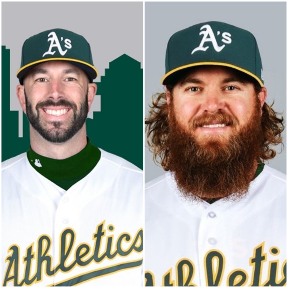 Photo credit: Photo collage of Mike Fiers (left) and Shawn Kelley (right) from @AthleticsPR.