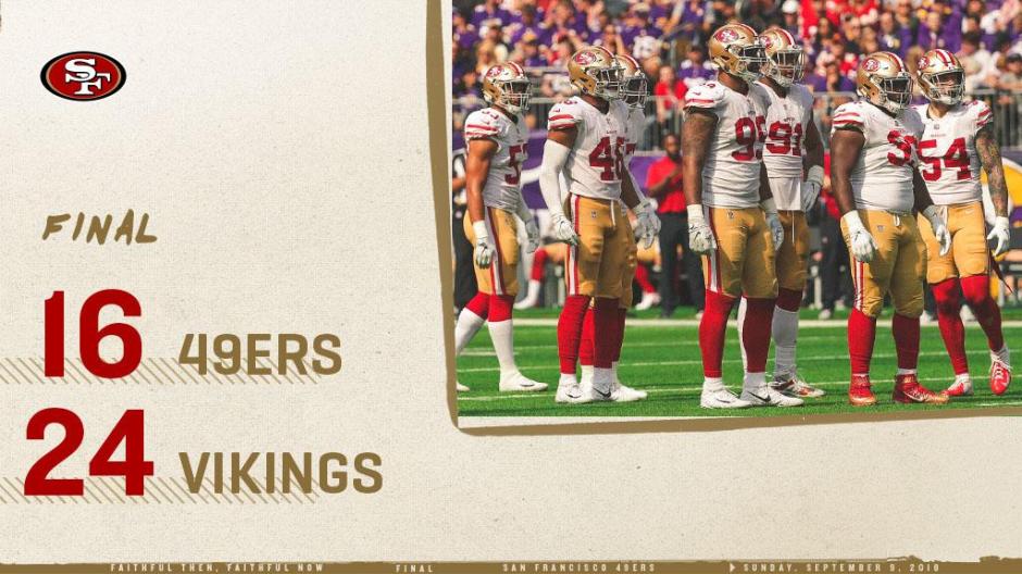 Jimmy Garoppolo is no longer undefeated as a starter in the NFL, as the Minnesota Vikings outlasted the Niners 24-16.