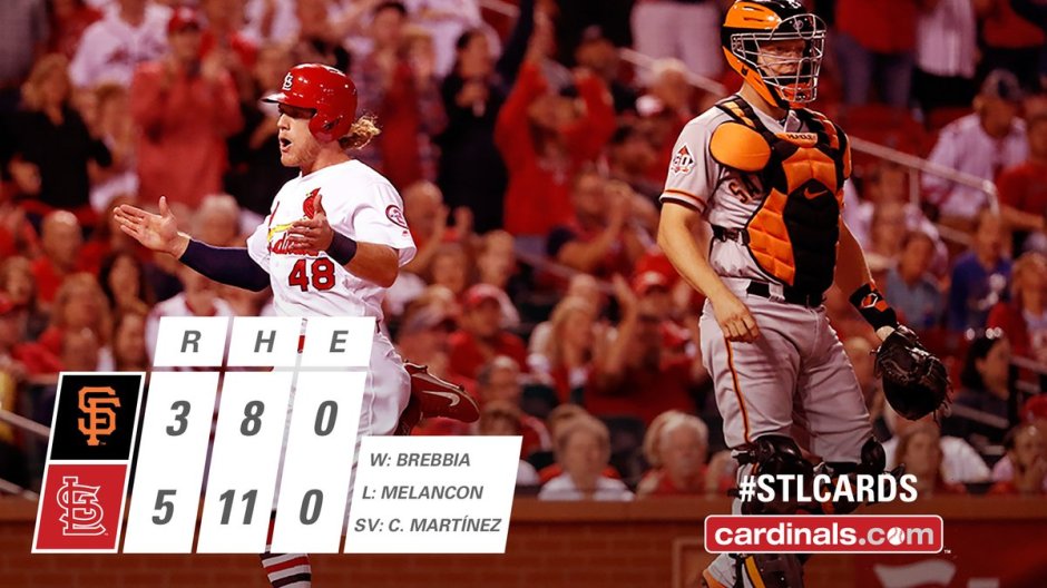 Reliever John Brebbia struck out the side in the top of the eighth inning to pick up his fifth win of the season for the Cards, while Carlos Martinez, who was celebrating his 27th birthday notched his fourth save in as many opportunities.