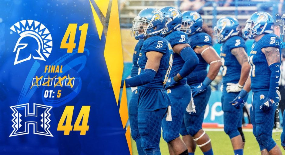 Neither team made the necessary go-ahead play in order to win, so the Spartans and Rainbow Warriors headed into the first overtime with a 31-31 tie. Hawaii got the first overtime possession.