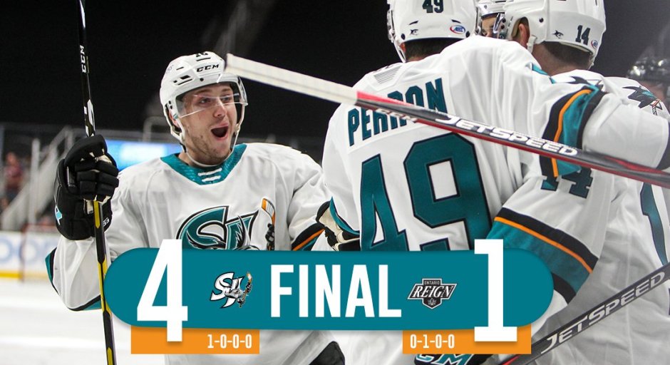 San Jose outshot Ontario 14-7 in the first period and controlled the tempo throughout the frame.