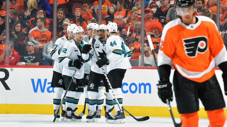 After a 4-0 shutout loss Monday, the San Jose Sharks replied strongly with eight goals the very next day, spoiling the Philadelphia Flyers’ home opener this time around.