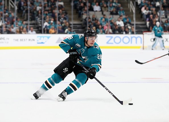 San Jose hadn’t generated much offense to that point, not finding a shot on net for the majority of the first 10 minutes. That all changed after a heady play by Timo Meier. Meier stole the puck from a New Jersey skater entering the Sharks zone and went the other way, ultimately beating Keith Kinkaid from the right faceoff dot to tie the game with 4:09 left in the first.