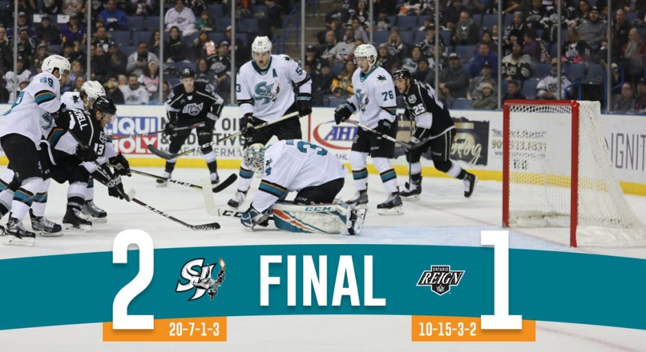 Less than 24 hours later, the San Jose Barracuda were able to get the bad taste of the loss to San Diego out of their mouths. Two second period goals were enough to take down the Ontario Reign in a 2-1 victory on Saturday evening at Citizens Business Bank Arena. San Jose is now 3-0 against their Pacific Division rival.