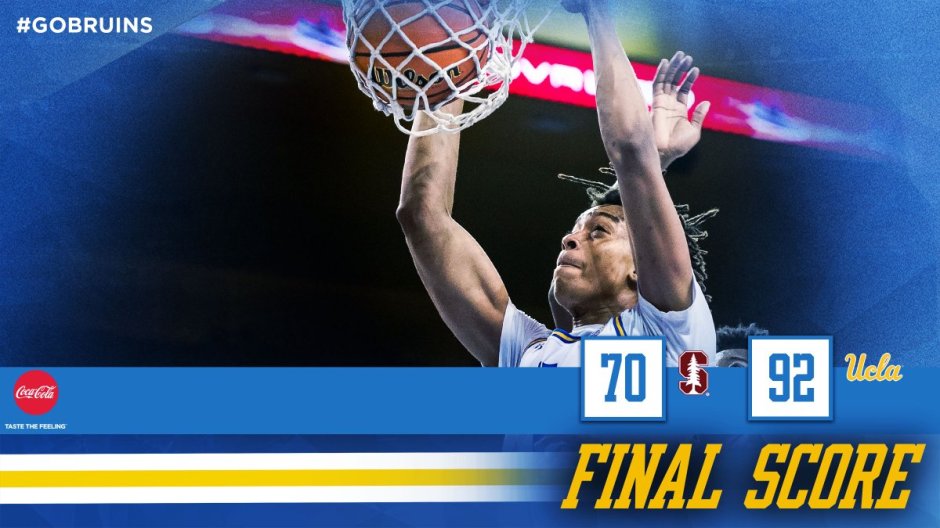#1 UCLA (8-6) blew out Stanford (7-6) 92-70 for a 22 point win on Thursday at Pauley Pavilion.