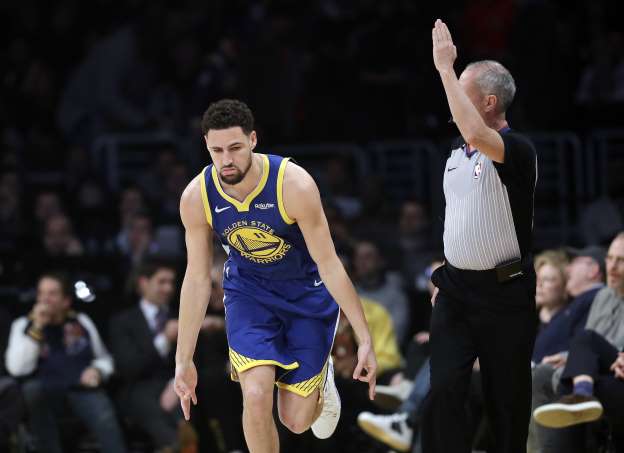 Photo credit: msn.com– Golden State Warriors’ Klay Thompson shot for a NBA record setting ten consecutive three pointers on Monday night at Staples Center against the Los Angeles Lakers