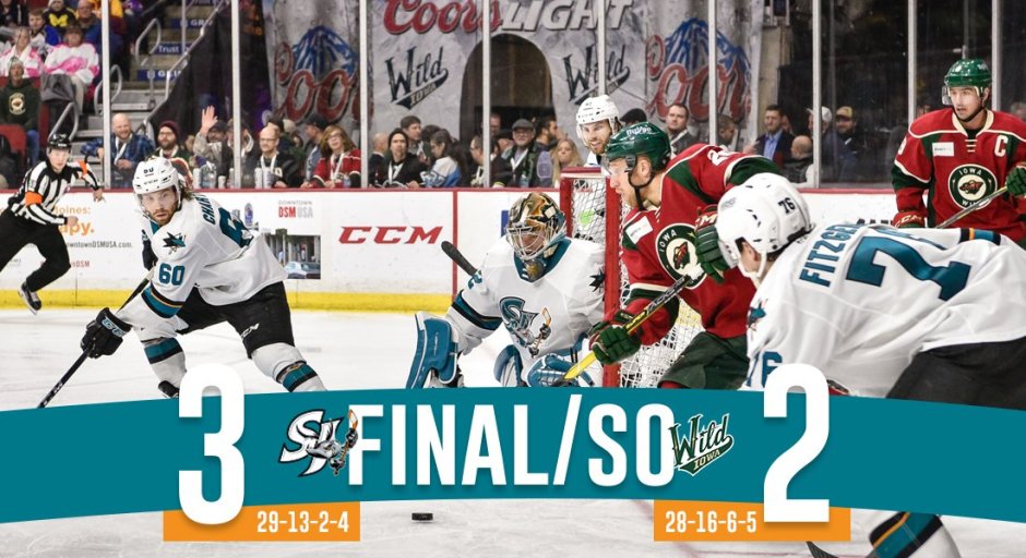 GAME NOTES: San Jose was 0/2 on the power play. Iowa was 1/4.