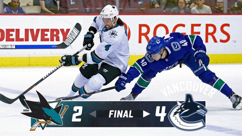 San Jose had a 12-0-1 record versus Vancouver, but the Canucks were able to treat their fans in the home finale with a 4-2 win at Rogers Arena Tuesday.