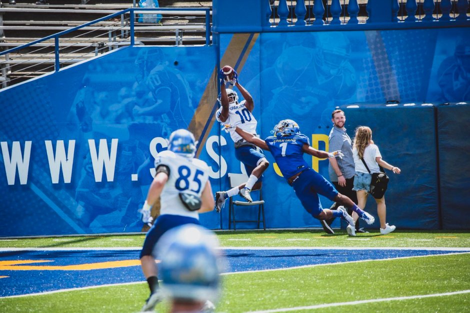 SJSU defensive coordinator Derrick Odum said: “We’re working on a lot of things in practices. We’re going to start with our install a lot further down the line than we’ve ever had in the past, so that was really good, and if we could just polish up on a few things, we’ll be fine. I was excited to see the guys buying in and doing stuff.”