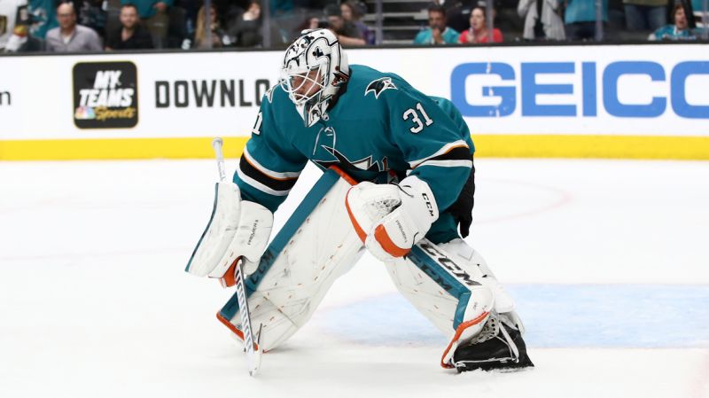 yahoosports.com photo: Martin Jones of the San Jose Sharks protects the nets on Friday night in game one against the Colorado Avalanche, Jones stopped 26 shots.