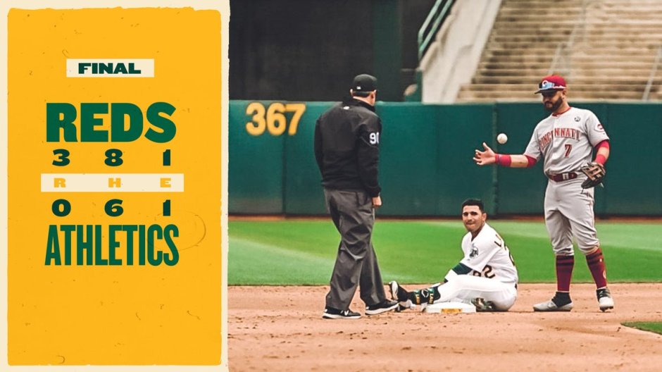 The A’s fall to 17-22. The Reds improve to 16-22.