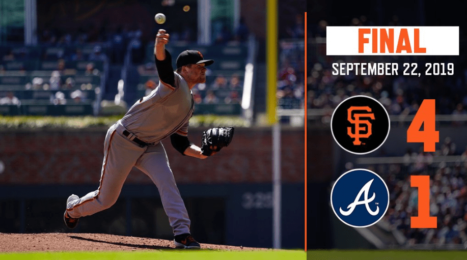 The San Francisco Giants defeated the Atlanta Braves to prevent a three-game sweep in the series between the two teams at SunTrust Park on Sunday.