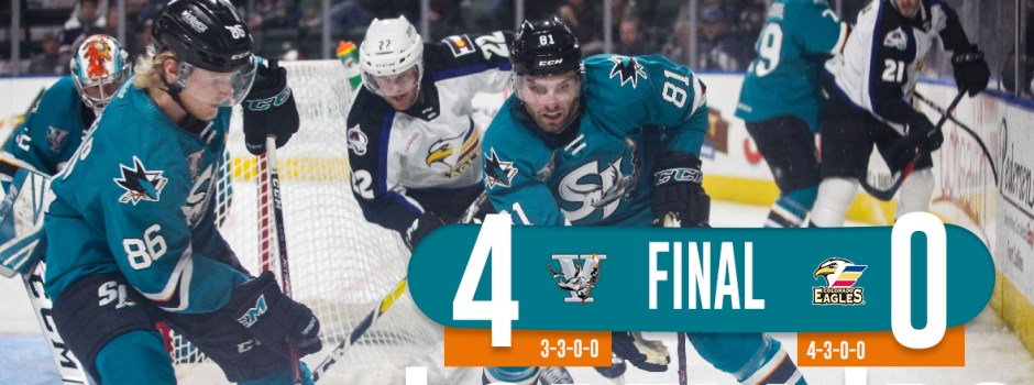 Never underestimate the difference 24 hours can make. After being shut down, the night before, the San Jose Barracuda used a four-goal first period outburst en route to a 4-0 shutout victory over the Colorado Eagles for their first road victory of the season on Saturday evening at the Budwiser Events Center.