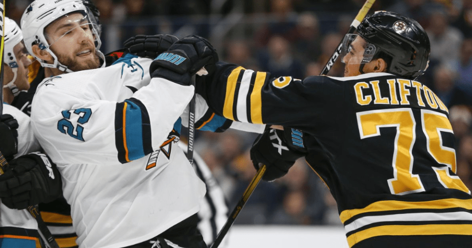 #1 Len in short the Boston Bruins (9-1-2) made short work of the San Jose Sharks (4-8-1) with two goals in the first and three goals in the second period are teams learning about the Sharks weakness crash the net early apply the mercy rule in the third period.