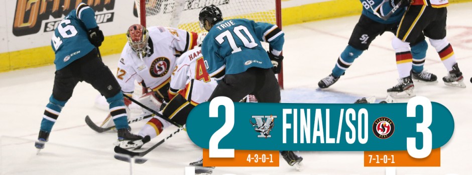 The San Jose Barracuda weren’t able to hold on to a one-goal lead in the third period and it ended up burning them as the Stockton Heat rallied with a late third period power play goal that led to a 3-2 shootout victory on Friday evening at Stockton Arena.