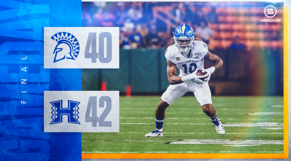The Spartans lost to the Rainbow Warriors 42-40. With the loss, SJSU fell to 6-4, 1-5 Mountain West, while Hawaii improved to 6-4, 3-3 Mountain West.