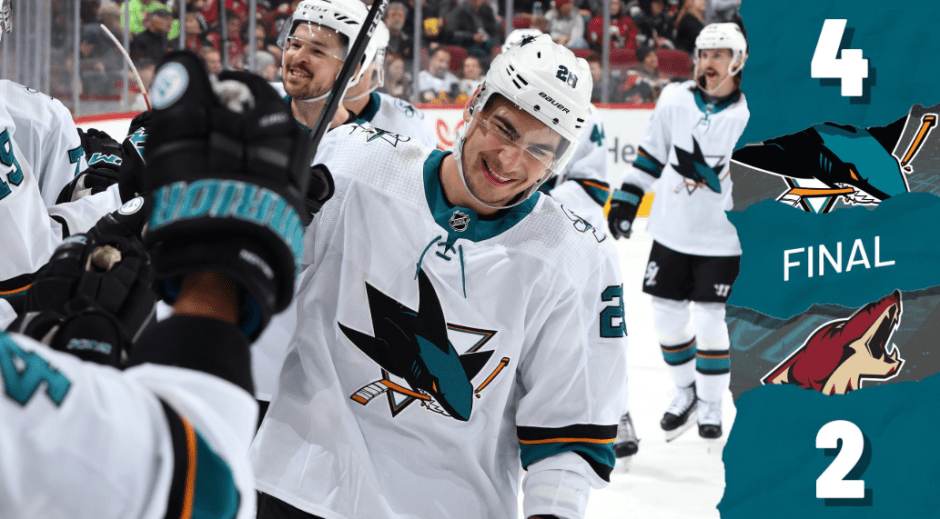 Both teams were playing the second game of back-to-backs — the Sharks beat the Kings 4-1 in Los Angeles on Friday, while the Coyotes lost in Las Vegas in an overtime shootout with the Golden Knights.