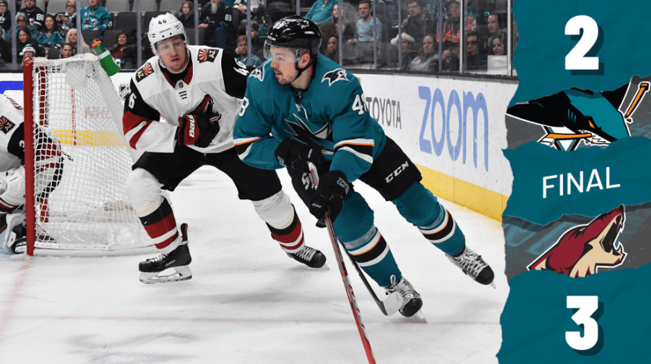 #1 Not enough offense for the Sharks on Tuesday night, despite scoring a goal in each of the first and second periods at SAP Center against the Arizona Coyotes.