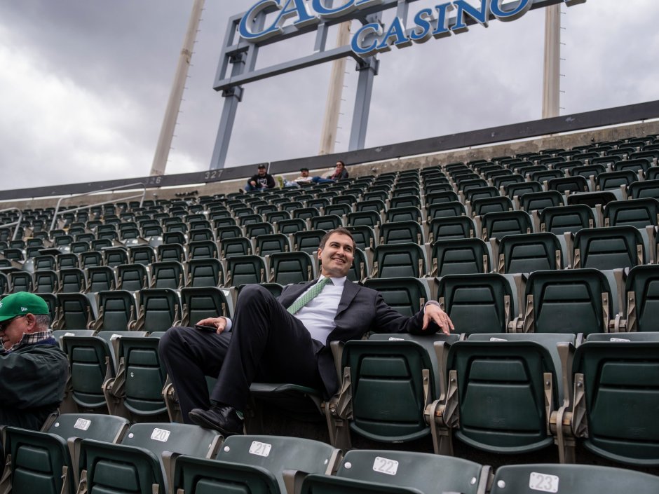nytimes.com file photo: Oakland A’s team president David Kaval lounges in the upper deck at the Oakland Coliseum during the 2019 season. Jack London Square will start building new restaurants and businesses drawn to the idea of the A’s breaking ground at the site.
