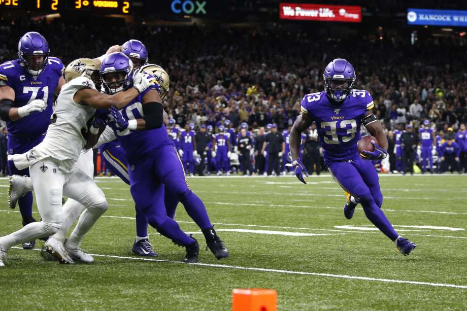 sfgate.com photo: Minnesota Vikings running back Dalvin Cook (33) carries near the goal line in the first half of an NFL wild-card playoff football game against the New Orleans Saints, Sunday, Jan. 5, 2020, in New Orleans.