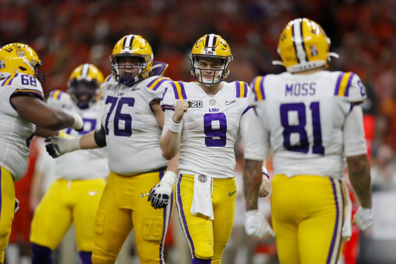yahoo.com photo: LSU quarterback Joe Burrow (8) had a record night in the NCAA Championship throwing for 463 yards and six touchdowns Monday night against the Clemson Tigers