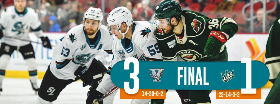 GAME NOTES: San Jose was 0-for-3 on the power play. Iowa was 0-for-2.
