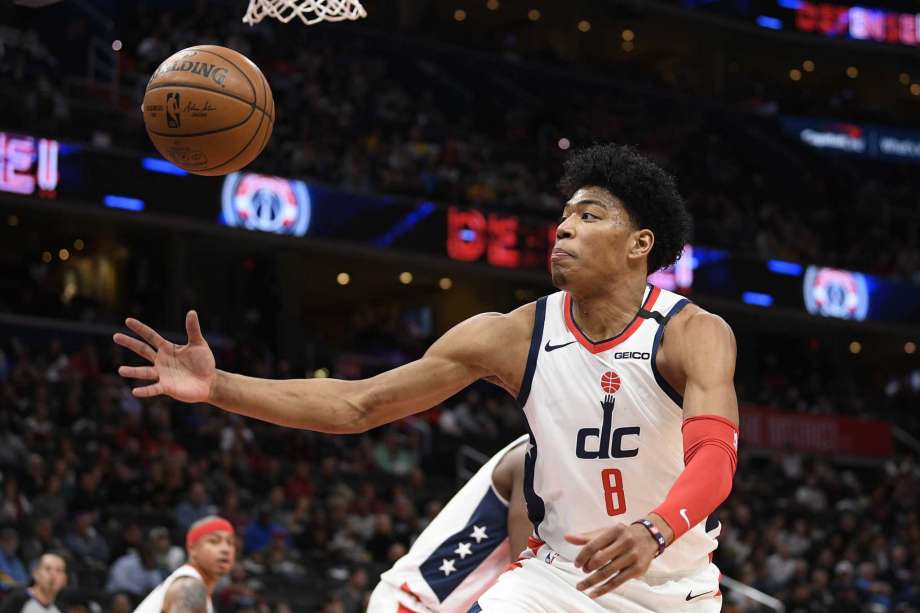 photo from sfgate.com: Washington Wizards forward Rui Hachimura (8), of Japan, goes for the ball during the first half of an NBA basketball game against the Golden State Warriors, Monday, Feb. 3, 2020, in Washington
