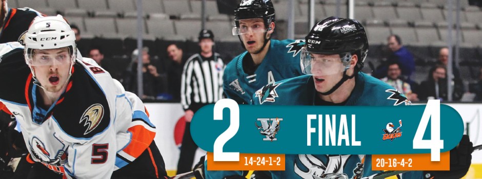 On a night where San Jose dressed only 11 forwards, the Barracuda lost its fifth game in a row. The Gulls extended its five-game point streak and are now 4-3 against San Jose this season.